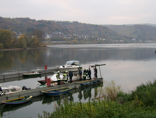 03.11.2007 Um 16 Uhr 23 wurde die Feuerwehr Lorch zum Auspumpen eines Sportbootes alarmiert. Das Boot war aus bisher ungeklärter Ursache am Steiger voll Wasser gelaufen und gesunken. Da Betriebsstoffe austraten empfahl die Wasserschutzpolizei das Boot auszupumpen und mit Hilfe eines anderen Bootes zu Heben. Es mußten drei Tauchpumpen eingesetzt werden um das Boot wieder zum schwimmen zu bringen. Danach wurde das Boot an Land gezogen um es dann durch einen Kran aus dem Wasser zu heben.